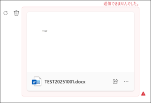 10月8日頃より、Teams で複数人のグループチャットでファイルを添付してメッセージ送信しようとすると、「送信できませんでした」とエラー表示され、メッセージ自体が相手に送られない現象が一部の利用者で発生しています。