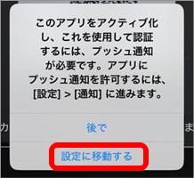 プッシュ通知を設定するよう表示されたら「設定に移動する」をタップし、通知を許可してからアプリに戻り再度QRコードをスキャンしてください。