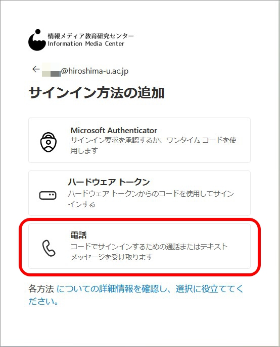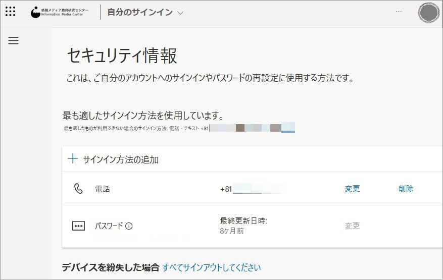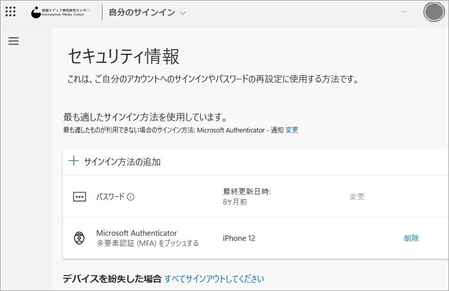 【注意】学生は、入学後、教職員・学外者は、IMCアカウント登録後30日は、多要素認証設定(MFA設定)の猶予期間になります。未設定で30日を過ぎた場合、学外ネットワークからIMCアカウントでサインインするとアクセスできない、または多要素認証(MFA)の設定を求められます。認証方法を決めたら「セキュリティ情報」のページより、2要素目の設定をしてください。