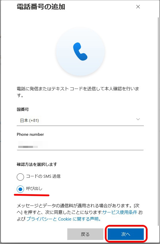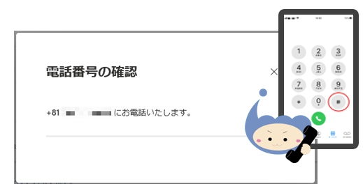 - 電話の場合、マイクロソフトから電話がかかってきますので、音声ガイダンスに従い電話の「#(シャープキー)」を押します。(スマホの場合は、キーパットを表示してタップします)