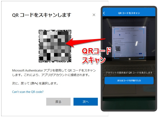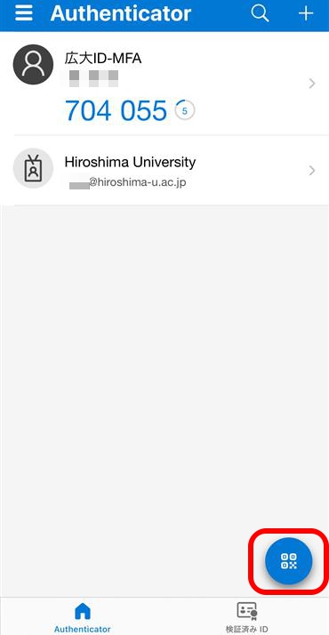 のAuthenticator アプリを開き、Authenticatorアプリの機能でQRコードをスキャンします。