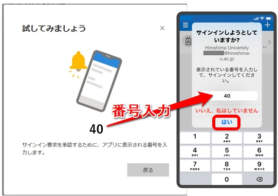 - スマートフォンに「サインインしようとしていますか?」が表示されない場合は、「Microsoft Authenticator アプリ