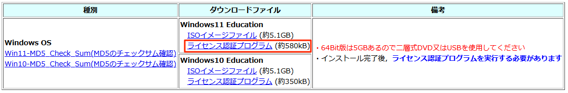 後は,画面の指示に従って,インストールを行ってください。 - アップグレード後,包括ライセンスのダウンロードページから Windows11 のライセンス認証プログラムをダウンロードし,実行してください。