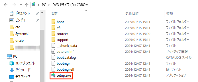 - マウントした画面の「setup.exe」をダブルクリックし,「このアプリがデバイスに変更を加えることを許可しますか?」で [はい] をクリックする。