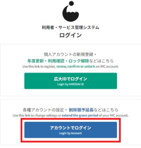 - 「利用者・サービス管理システム」で「アカウントでログイン」をクリックする